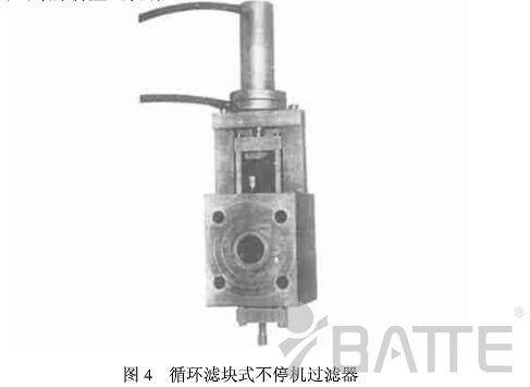 新型熔體換網過濾器在國內的開發應用較晚,上世紀八十年代年國內一些企業才研制出帶料壓傳感報警系統和高壓污料泄荷系統的循環濾塊式不停機換網過濾器(圖4),該機可在佳時機報警更換濾網,使換網時機選擇可準確量化,防止錯換和漏換而且還能使主體總壓力比同類產品降低30%-50%,在美、德、日、奧、韓等國進口的BOPP,CPE,EPE,塑料拉絲,彩印復膜生產線上配套使用證明安裝簡便,易操作,性能穩定可靠。